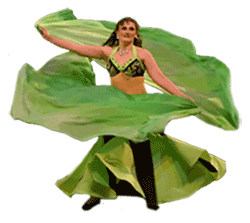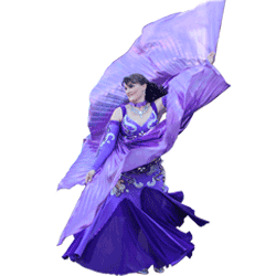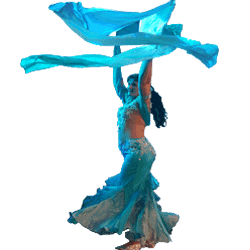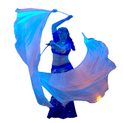 sollte in einer orientalischen Show nicht fehlen! Häufig wird ein Schleier als Entrée einer Tänzerin benutzt. Die Tänzerin kann sich darin einwickeln, das Gesicht dahinter verbergen und wunderschöne Figuren in die Luft zeichnen. Als Zuschauer kann man die fließenden, weichen Bewegungen mit dem unvergleichlichen Farb-Spiel der Schleier genießen. |