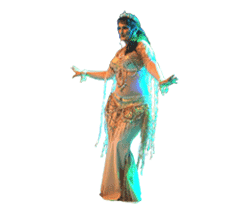 Der Schleiertanz ist durch die verschiedensten Mythen gekennzeichnet. Ischtar tanzte demnach den "Tanz der 7 Schleier", um ihren Ehemann Tammuz aus der Unterwelt zu retten, der gerade verstorben war. Um in die Unterwelt zu kommen, muss Ishtar vor jedem Tor einen Tribut, ein Kleidungsstück oder Schmuck, ablegen, um passieren zu dürfen. Die Schleier stehen symbolisch für jeden einzelnen Tribut. Am Ende hat sie alle Schleier abgelegt und steht vor Tammuz. Beim Doppelschleiertanz führt die Tänzerin zwei Schleier mit sich. |