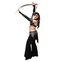 Er wurde in der Hauptsache von jungen Männern ausgeführt, damit sie sich im Kampf erproben konnten. Getanzt wird heute von beiden Geschlechtern in zwei Stilen : entweder mystisch oder kriegerisch. Dabei wird letzteres vom männlichen Geschlecht bevorzugt. Der Tanz erfordert hohes Geschicklichkeitsvermögen. Säbel oder Schwerter kommen häufig im "Tribal-Fusion"-Tanz vor. Ein Schwert hat immer eine gerade, ein Säbel eine geschwungene Schneide. Die Waffe(n) ballanciere ich dann und wann auf meinem Körper schwinge sie zu komplizierten Figuren, oder halte sie in Posen. Am liebsten tanze ich auf kriegerischer Art zu "Tribal Fusion"-Musik in dementsprechenden Kostümen. |
