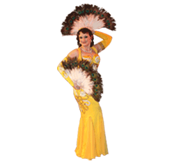 Klassische Bauchtanzbewegungen werden in diesem Tanz mit einem oder zwei Federfächern kombiniert. Die Federfächer sind dem Burlesque entliehen. Getanzt wird damit gern zu langsamen Stücken wie z.B. einer Rumba Oriental oder Fantasie-Stücken. |